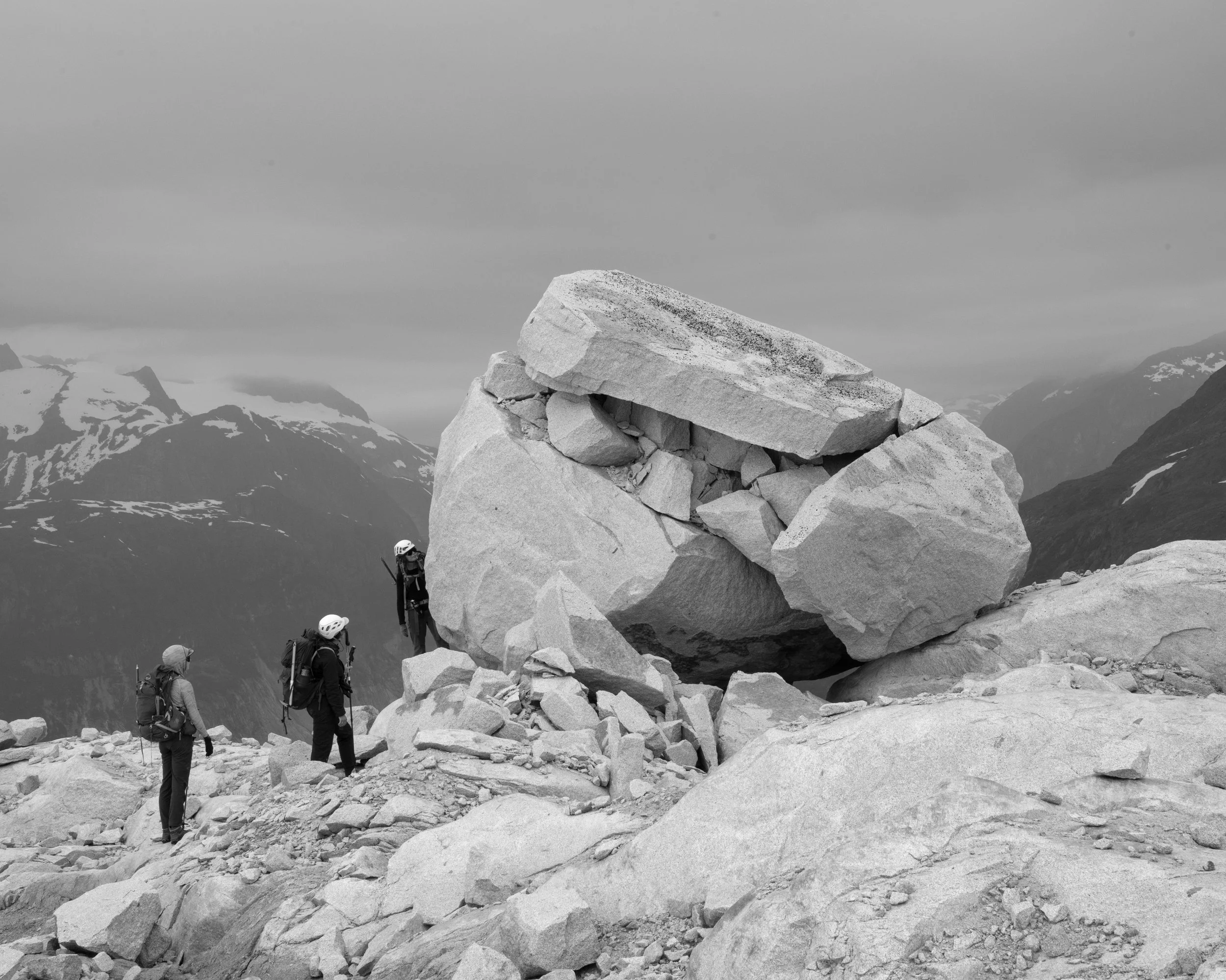 Once I found the Juneau Icefield Research Program, I reached out to them through Deb Gregoire, who's a friend, and was the local manager at the time. I really wanted to get up there and see what it was all about. I was driving her crazy. She eventually agreed to let me tag along for staff training for two days and make pictures. They had a staff member who was showing up late and he hadn't been up there before. So she asked me to hike him up via Blackerby, stay with the team for two days, and then hike down via Lemon Creek. And I would make pictures for them.