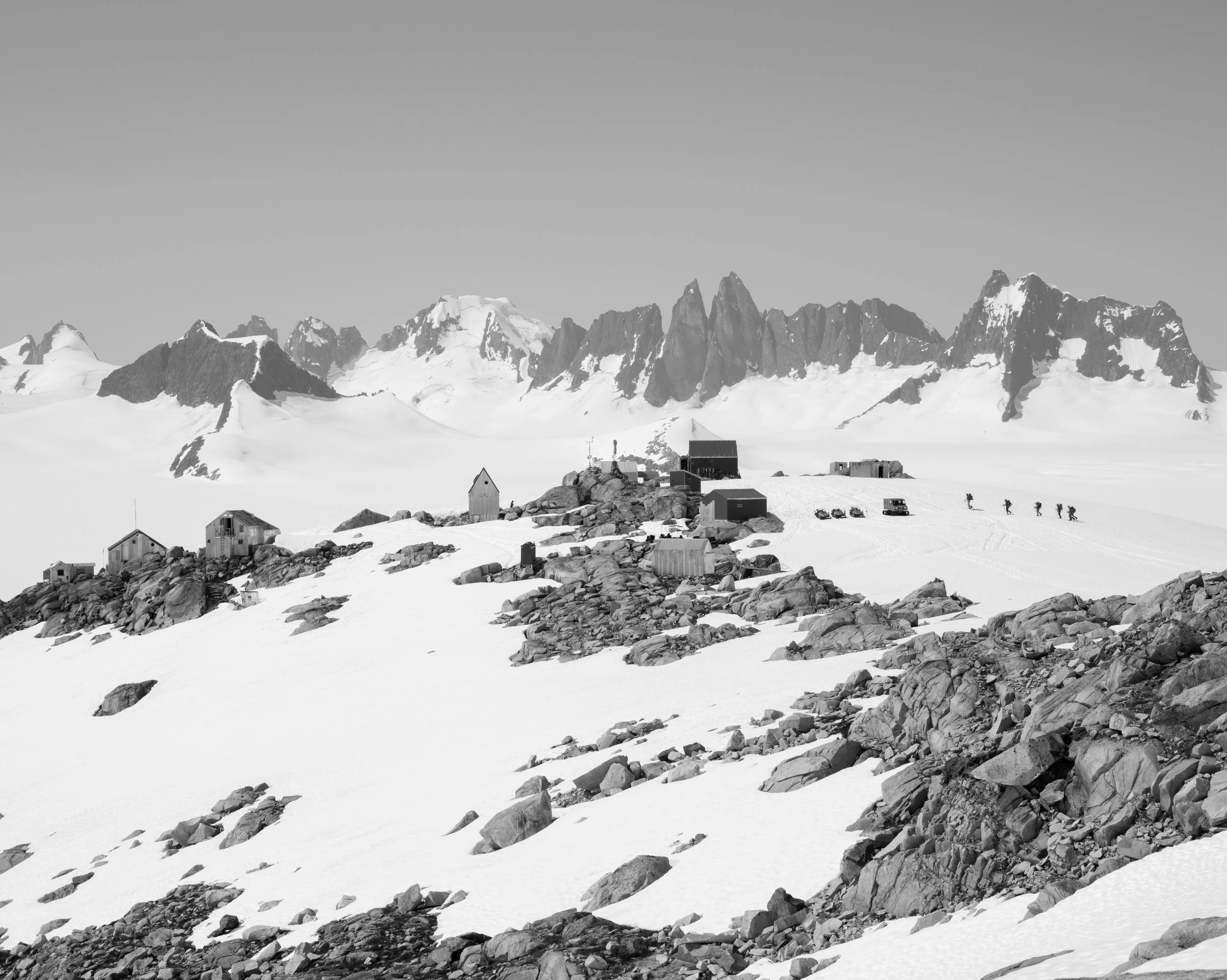 “I first saw Camp 17, on the 15,000-square-mile Juneau Icefield, from Juneau’s Blackerby Ridge in the summer of 2011 or 2012. As a photographer who has done a lot of work with architecture and people on the edge of wilderness, I was really interested in the space visually. Those shiny tin can buildings surrounded by ice had a real effect on me. I came back to town to find that not a lot of people knew what was going on up there on the icefield.